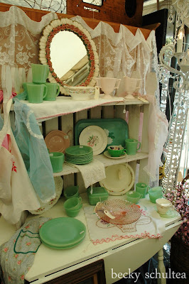 The next several photos are from the Old Oak Cottage booth at LaBahia. This wonderful shop is owned by my newest Home Girl, Marci. She is a delight and I love her merchandise! If you haven't heard, Mandie at Altar'd is opening a showroom for her handpainted furniture and a spot for her furniture painting workshops at a brand new building at the Old Oak Cottage in Huffman (near Kingwood). I am definitely going to pay these girls a visit, camera in hand, during the grand opening of the new showroom April 29th & 30th! Check out the Old Oak Cottage blog or Altar'd's FB Fan Page for updates!