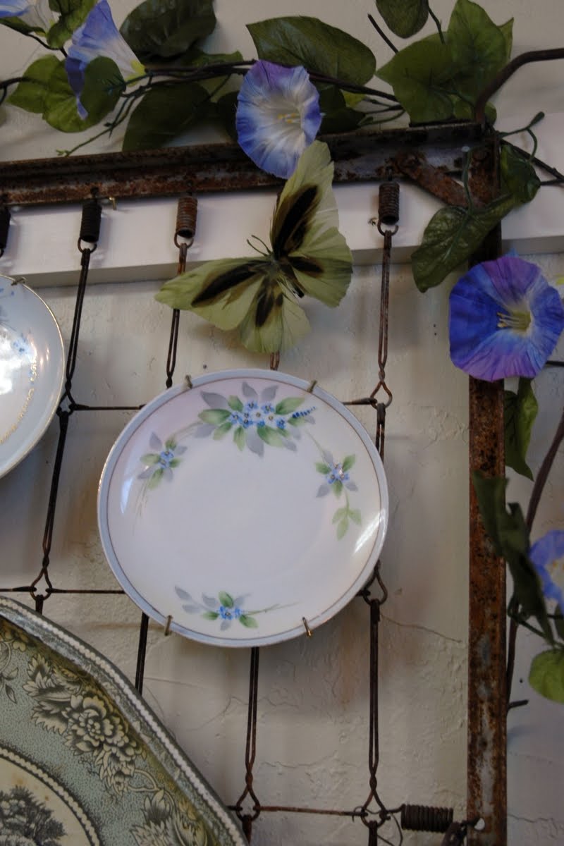This is one of my favorite finds ever - rusty old baby bed springs...I love using it as part of the wall display...it adds such texture and it's easy to hang items from it...