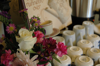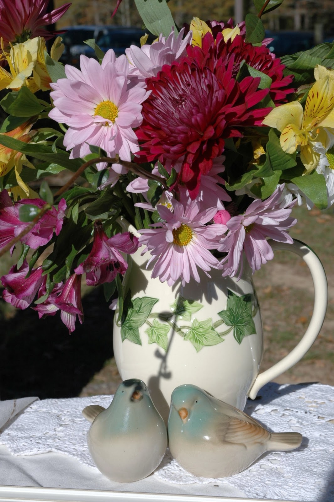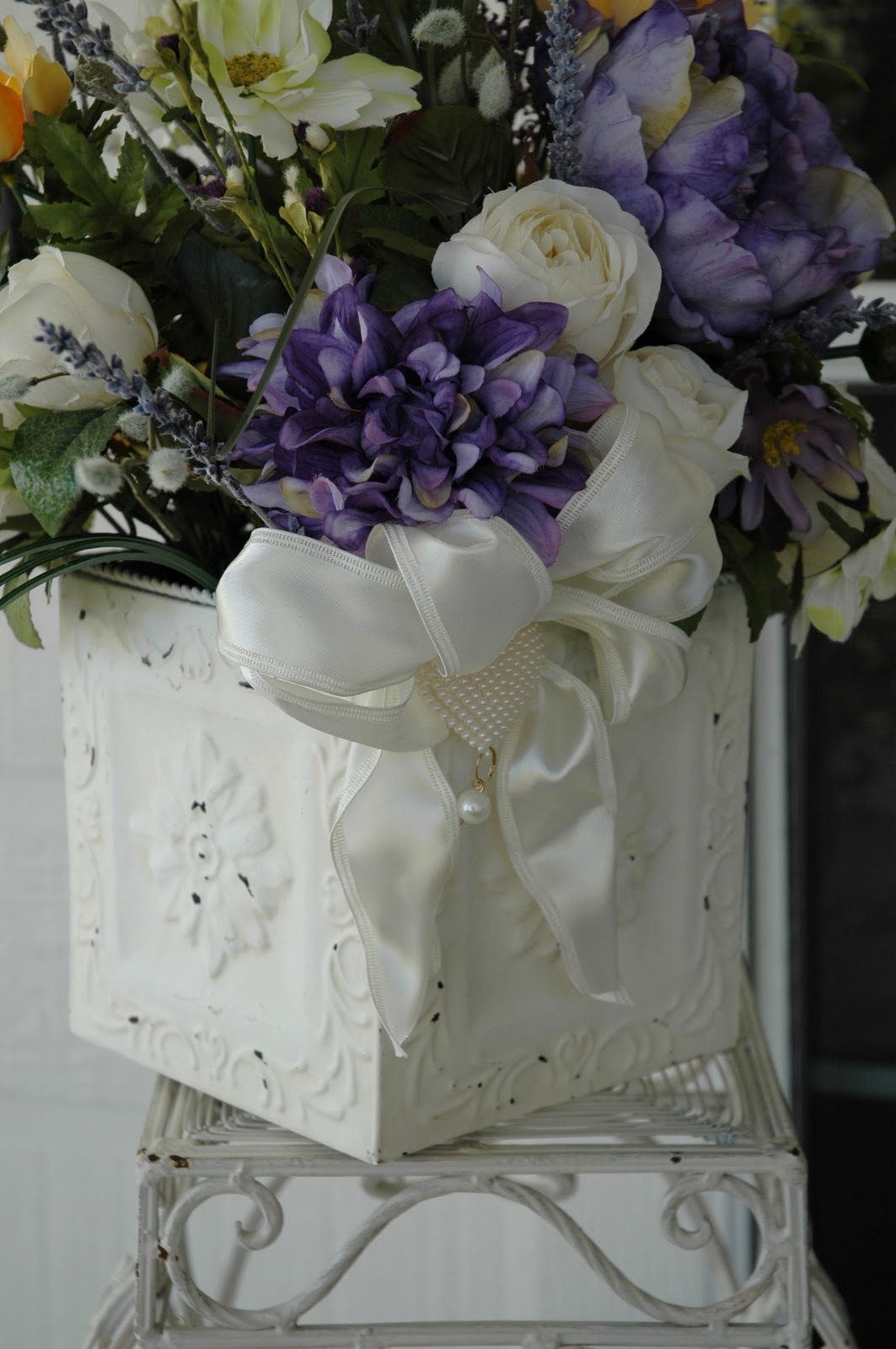 I was SO blessed to have a ton of help from so many people to put all the vignettes and details together..for example, the bride's aunt is a former florist, and she did all the table arrangements like this one. All the fresh flowers were from Kroger!