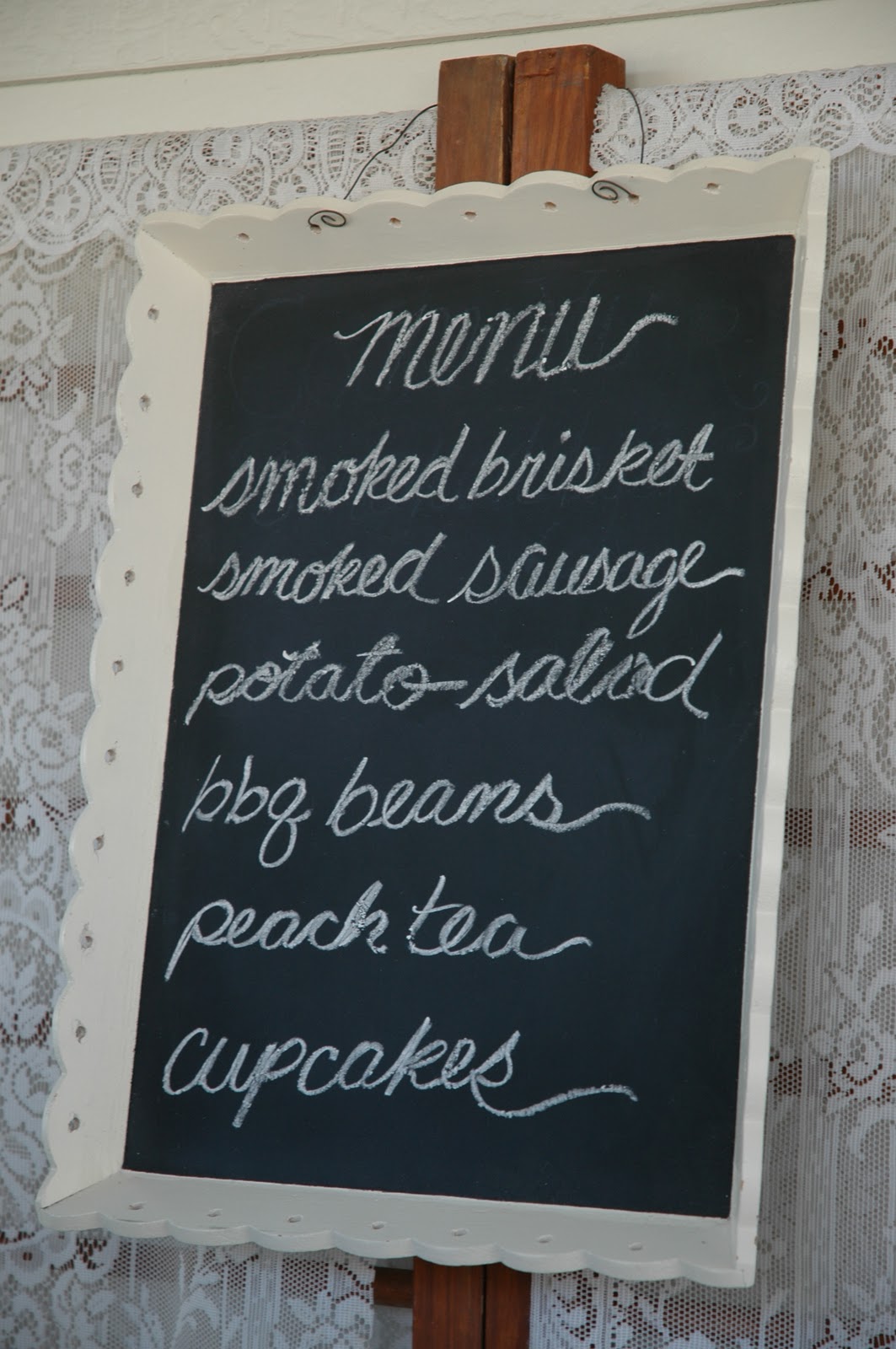 Menu chalkboard made from a vintage tray (my brother catered the BBQ for the wedding and he outdid himself again - yummy!!)