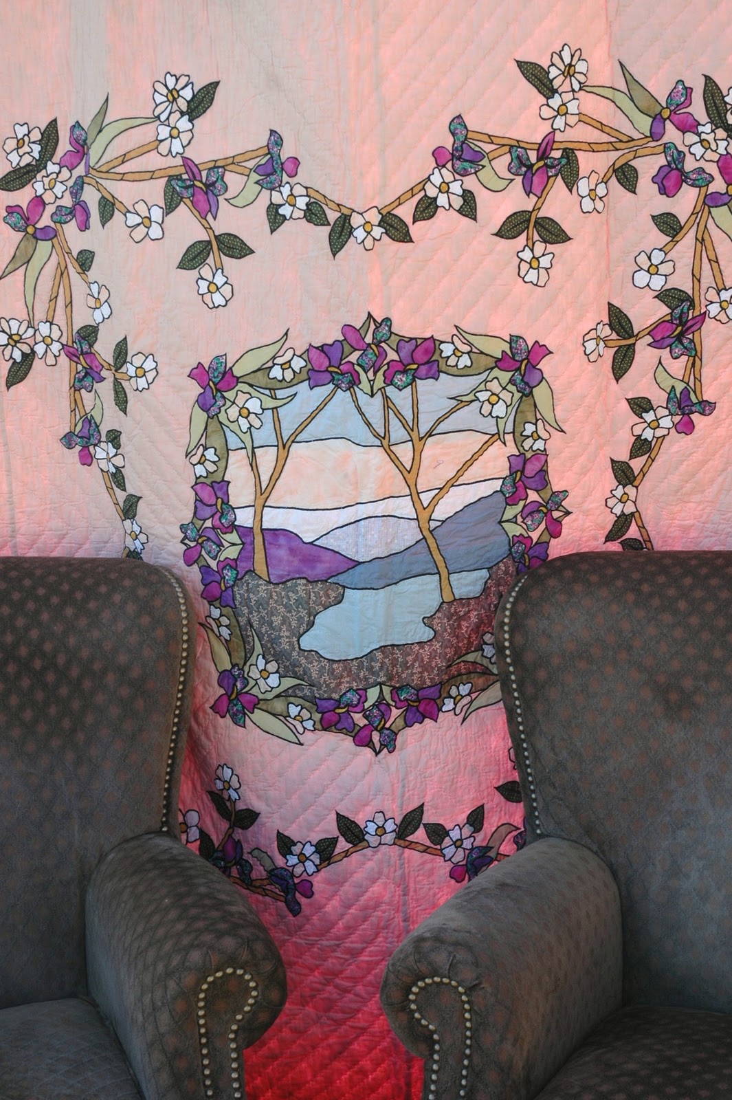 "Photo booth" for the guests (the gorgeous quilt was a gift to me from the bride's Mom for my help with the wedding!)